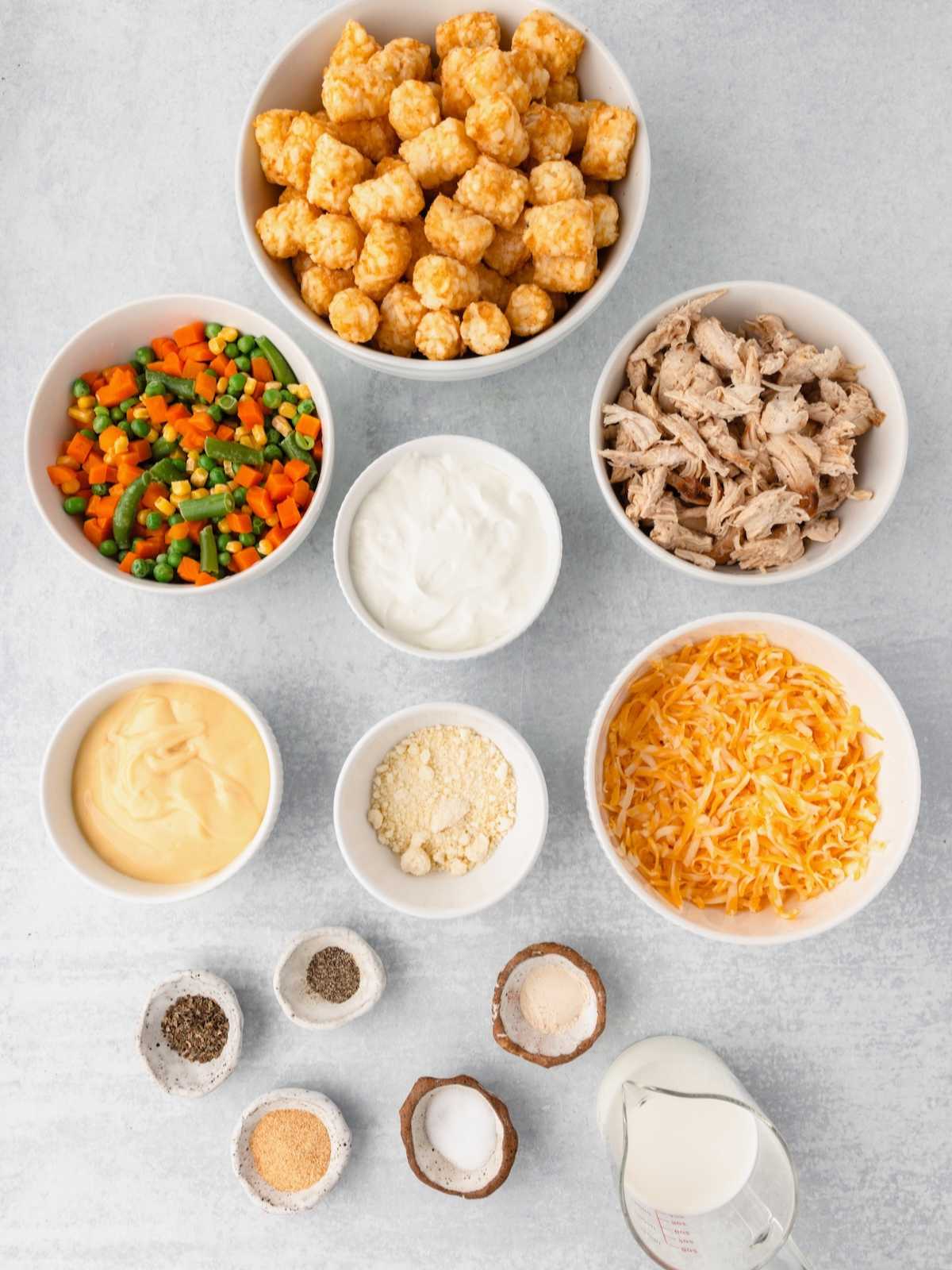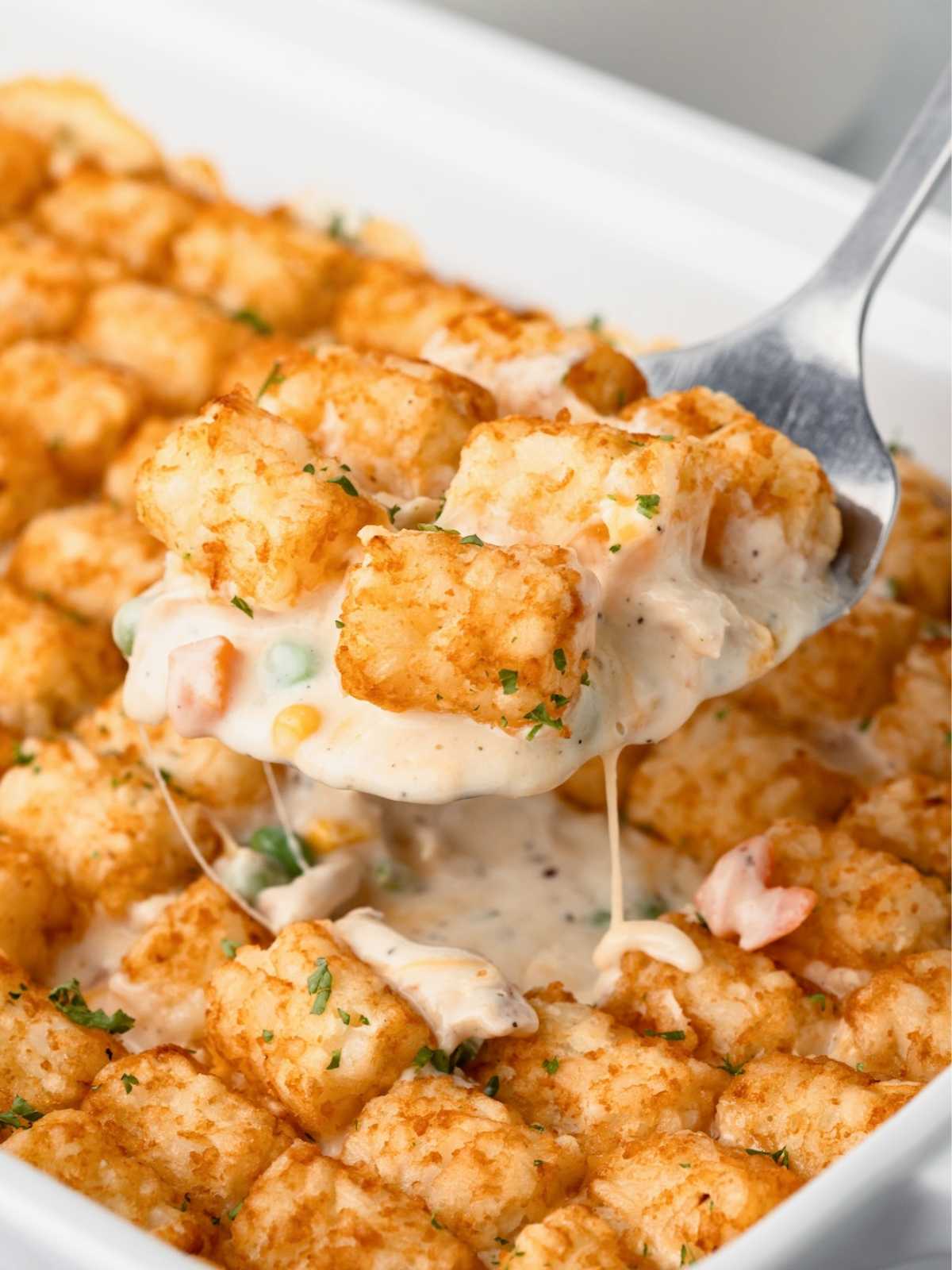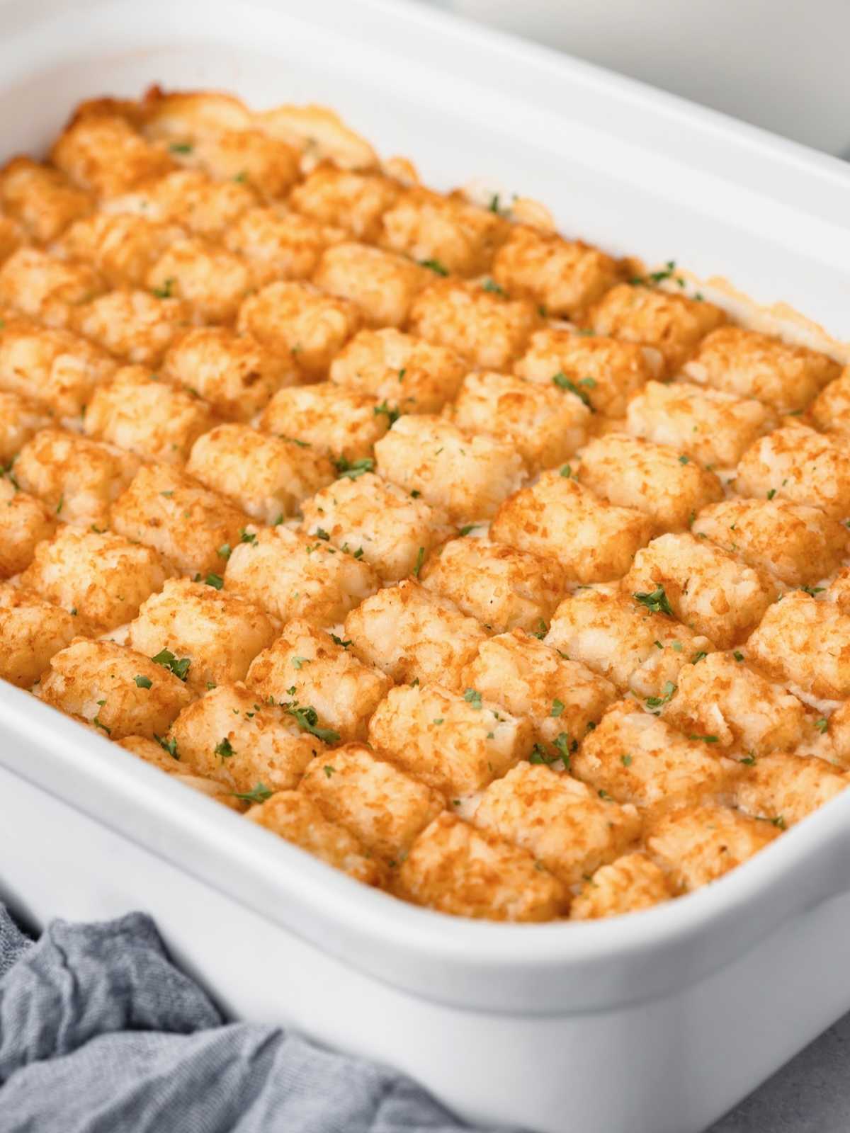For extra crispy tots, bake them for 10 minutes on a sheet pan before adding them on top of the casserole.